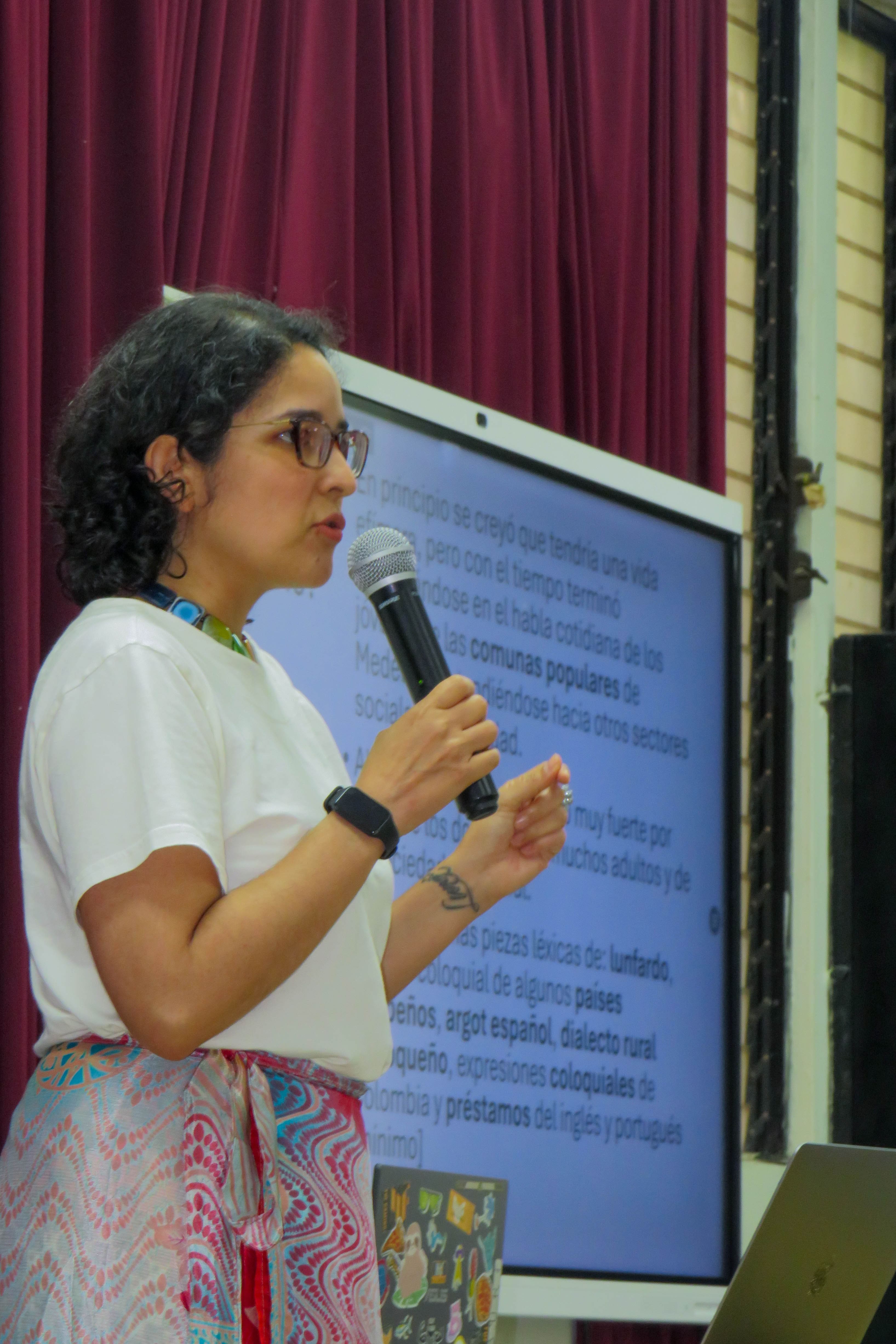 La cátedra magistral “Hablemos sobre el parlache, argot de los parceros” fue impartida por la filóloga hispanista Isabel Luna Coutin el sábado 21 de junio, este espacio académico exploró el uso del lenguaje juvenil urbano desde una perspectiva lingüística rigurosa.